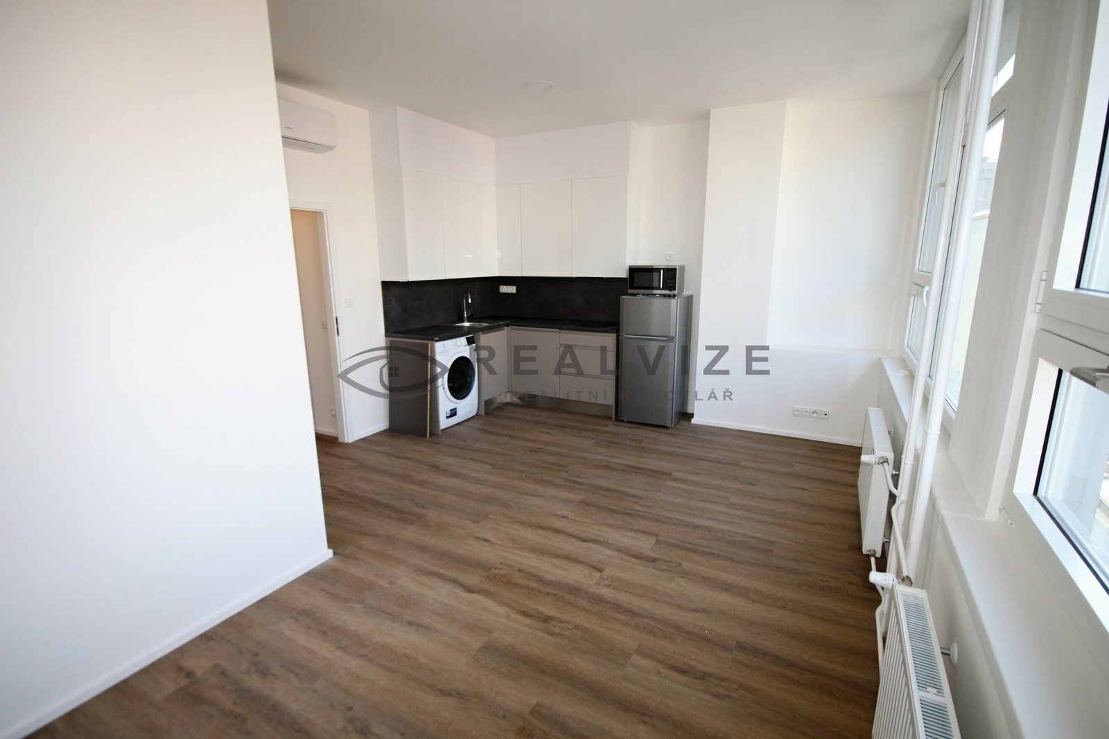 Pronájem bytu (č. 411) o dispozici 1+kk na Žižkově tř. nedaleko centra v Českých Budějovic ve 4.NP bytového domu s výtahem. Byt o výměře cca 28 m2 se skládá z předsíně, koupelny se sprchovým koutem a obýváku s kuchyňským koutem. Byt je vybaven novou kuchyňskou linkou se spotřebiči (dvouplotýnková indukční varná deska, myčka, pračka se sušičkou, lednice, mikrovlnná trouba).